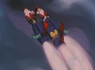 Cosmo Special is able to separate into three ships, each piloted by its three pilots and has enough thrust and lift to break through the Earth's atmosphere.