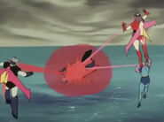 - Scarlet Beam: A beam of photonic energy. The attack is usually shot from the Scarlet Mobile's headlight, but during the final battle against Demonika the Scarlet Beam comes out of Diana's eyes instead.