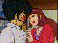 Despite arguing fairly often, Koji shares a solid friendship with Sayaka. Most of their squabbles involve Koji's disapproval of what he judges to be un-lady like on Sayaka's part, Koji's overall recklessness and brash personality or other trivial matters. They usually are quick to forgive each other, but sometimes their fights manage to escalate to the point one of them refuses to help the other during battles. Following Koji's decisive vote against the proposal to have Aphrodite A upgraded, a fight broke out between the two which resulted in Koji initially refusing to aid Sayaka in the battle against Abdora U6.[4] Similarly, after a misunderstanding resulted in an all out brawl, Sayaka declined Koji's request for help.[1] Koji is aware of Sayaka's feelings toward him and often teases her about it. Although he sometimes appears to show interest in her, even competing with Boss over it, they relationships stays platonic until the end. Sayaka's feelings are more explicit; whenever Koji appears to show interest in another girl, she becomes visibly jealous. Koji's fondness over Misato being the main reason Sayaka didn't like her very much at first.
