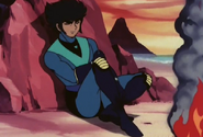 In Grendizer, Koji is given a new pilot suit, compared to the original black and red costume, this one is blue and has a mouthpiece.