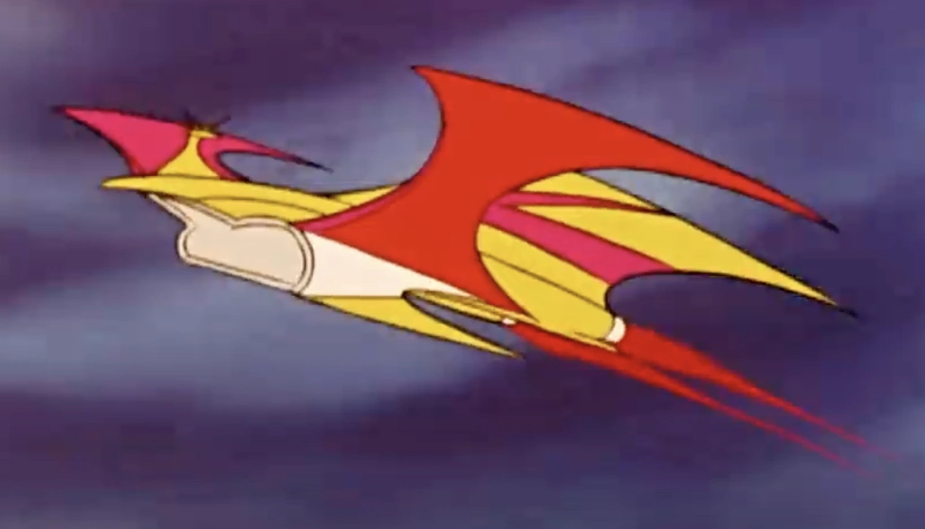 The Jet Scrander (ジェットスクランダー) is a winged, jetpack-like unit designed by Dr. Smith that attaches to the back of Mazinger Z to give it flight capabilities. The wings are razor sharp and can be used to cut enemies both in flight and when used as a weapon. It can be freely summoned by Koji when required by turning on the guidance circuit inside the Pilder, which activates the Scrander's tracking sequence through its radar. If the guidance circuit is switched off, the Scrander will automatically return to the Photon Power Laboratory. The Jet Scrander can be remotely controlled from the Laboratory, unless if the guidance circuit built into the Pilder is still active. The process of Mazinger Z docking with the Jet Scrander is coined as "Scrander Cross", due to Mazinger Z and the Scrander together forming a cross shape when docking. When flying at speeds exceeding Mach 2.3, the wings will shift backwards to minimize air resistance. It can also operate underwater without problem. An initial issue with the Jet Scrander is how it cannot withstand vibrations generated when flying at top speed at heights surpassing 20,000 meters, which was exploited in Episode 41 by Karma K5. After the Scrander was severely damaged by Deldan V8 in Episode 42, the Photon Power Laboratory scientists decided to refurbish the Scrander in Episode 43, increasing its maximum speed to Mach 4.5. During Mazinger Z's second overhaul in Episode 71, the Photon Power Laboratory staff also used the occasion to rebuild the Jet Scrander, giving it a larger dorsal fin and incorporating the Southern Cross Knives into it, with the construction period lasting until Episode 73. In Episode 77, the Scrander was shown intercepting the Flying Fortress Ghoul by itself and even firing the Southern Cross Knives on its own, but it is unknown whether or not this is autopilot or remote control at work. The wings became foldable from at least Episode 78 onwards, allowing Mazinger Z to use Daisharin Rocket Punch more conveniently without obstruction.