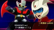 Mazinger Z detaches the Scrander and wields it as a gigantic bludgeoning blade. Only used in INFINITY to take out the rebuilt Damdam L2's central component. This attack is based upon a maneuver performed by the Go Nagai manga Mazinger Z.