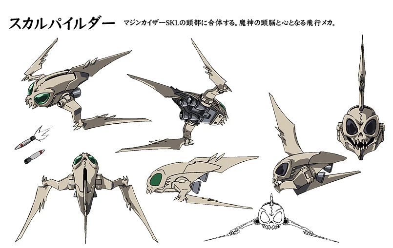 Mazinkaiser SKL (マジンカイザー SKL, Majinkaizā Sukaru?), pronounced Skull and known simply as Kaiser to the cast (with "Mazinkaiser" being spoken only one time by Tsubasa Yuki at the end of the OVA), is a variant of the Mazinkaiser that is utilized as a secret weapon of WSO. Compared to the original model, there are several differences between the SKL and the original Mazinkaiser. It is piloted by both Ken Kaido and Ryo Magami of the Death Caprice Squad of the Skull Force.