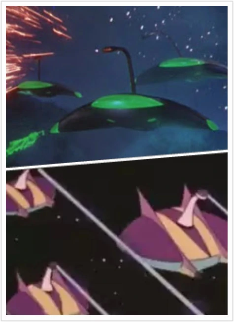 MiniFOs are small mass produced flying saucers piloted by Vegan Soldiers. Groups are often called MiniFO Legions.