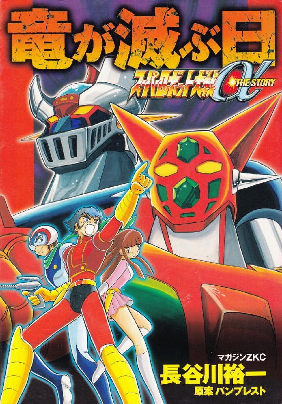 Super Robot Wars α THE STORY: The Day the Dragon Died (スーパーロボット大戦α THE STORY 竜が滅ぶ日, Super Robot Taisen α the Story: Ryuu ga Horobu Hi?) is a 2001 manga by Yuuichi Hasegawa. It was serialized in Magazine Z and later published in a single volume by Kodansha. It was was released alongside Super Robot Wars α. The manga depicts the Mazinger Z and Getter Robo mecha battling it out after an elaborate ruse by their enemies caused them to oppose each other. At the same time, mysterious new pilot recruits for the Photon Power Lab are hiding a dangerous secret. In addition to both series' characters and mecha, those from Daitarn 3, Brave Raideen, Giant Robo: The Animation and SRW Originals also play key roles in the crossover manga.