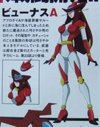 Venus A (ビューナスA, Byūnasu Ēsu?) is Sayaka Yumi's second robot after the Aphrodite A was destroyed. Much like its manga counterpart, it was designed after Sayaka from the three scientists.