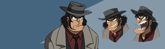 Inspector Ankokuji is a policeman of the law dedicated to keeping the peace of Atami, investigating the disappearances of people around the Kabuto household while also not jumping to conclusions like blaming Juzo for those disappearances. Witnessing firsthand the dangers of Dr. Hell and his Mechanical Beasts, Ankokuji put his faith into the Mazinger Z to deal with them to prevent further threats to Atami. Like his counterpart in Mazinger Angels, the Inspector is a chain smoker, occasionally smoking a cigarette where it is appropriate. He also has an attraction to a reprogrammed Gamia Q3, which he calls "my honey".