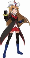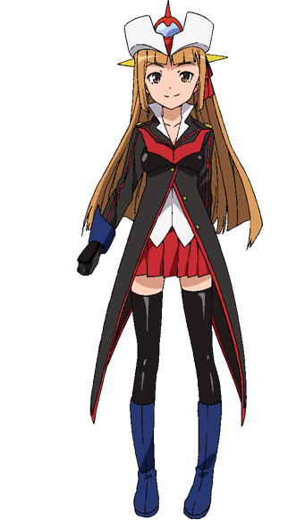 Z-chan is a teenage girl of average height with long light brown hair in a hairstyle that resembles that of Sayaka Yumi. She brown eyes and has a small red ribbon tied into the left side of her hair. Her usual outfit is a battle suit modeled after Mazinger Z featuring the usual black top that has blue cuffs, a white shirt underneath with the collar unfastened, a red skirt, and black stockings worn with blue boots. She also wears black gloves. On the chest of the uniform is a design shaped after the heat sinks of Mazinger Z. She also possesses the Hover Pilder and crown on her head with yellow spikes protruding out of the sides of her head.
